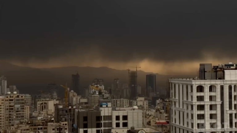 Uma fumaça escura e oleosa pairava sobre Teerã neste domingo (8) e deixou a cidade na escuridão em pleno dia. Incêndios desse tipo podem liberar substâncias químicas tóxicas e outros poluentes perigosos.